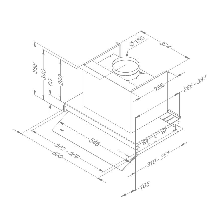 Novy | Hood | Fusion Pro 8710 | Telescopic | Energy efficiency class A+ | Width 60 cm | 682 m³ / h | Touch control | Led | Anthracite