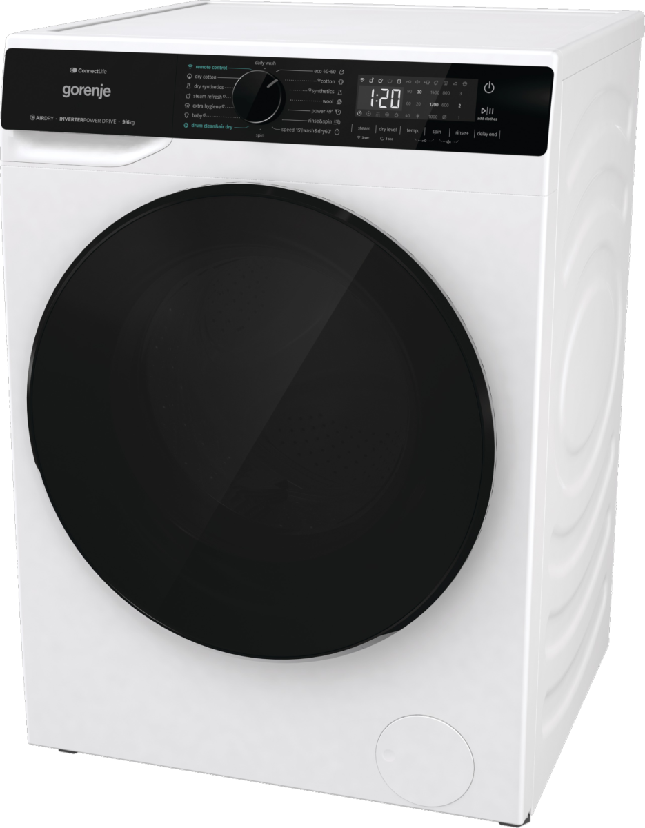 Gorenje Washing Machine with Dryer | WD2PA964ADW | Energy efficiency class A / D | Front loading | Washing capacity 9 kg | 1400 RPM | Depth 55 cm | Width 60 cm | Display | LED | Drying system | Drying capacity 6 kg | Steam function