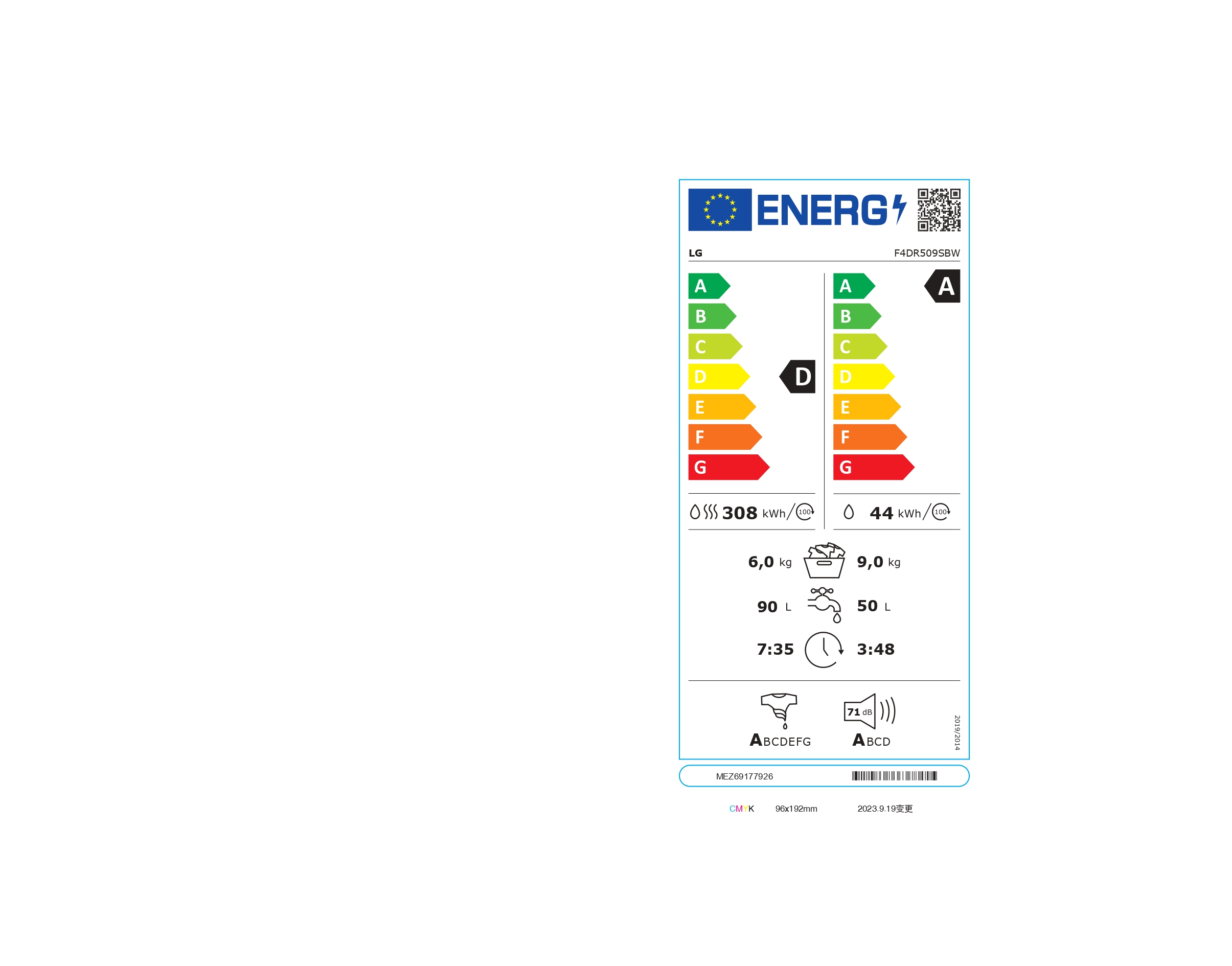 LG | Washing machine with dryer | F4DR509SBW | Energy efficiency class A | Front loading | Washing capacity 9 kg | 1400 RPM | Depth 55 cm | Width 60 cm | Display | Rotary knob + LED | Drying system | Drying capacity 6 kg | Steam