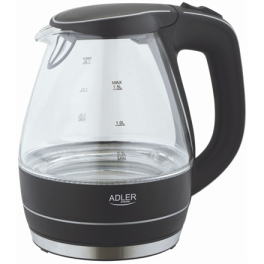 Kettle | Adler | Kettle | AD 1224 | Standard | 2000 W | 1.5 L | Glass | 360° rotational base | Black