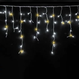 19-508 / Garland icicles for facades of houses and premises / 15 W / IP44 / CW + WW FLASH - cold white + warm white flicker effect / Green wire / 11 m / 300 LEDs