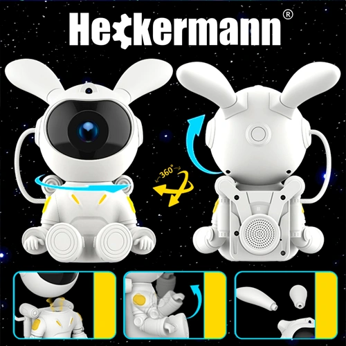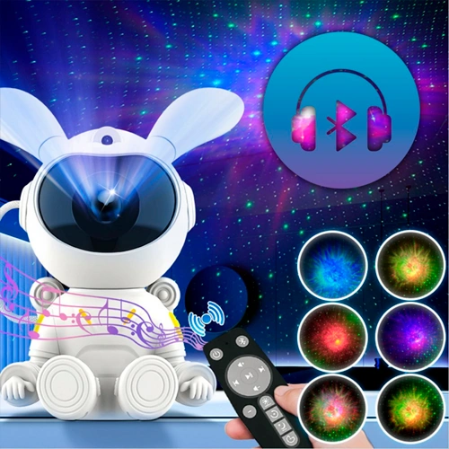 Projector bunny - astronaut with remote control - projection of the starry sky, galaxy, space