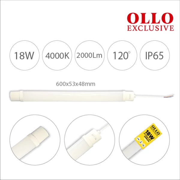 LED Waterproof linear luminaire 60cm, 18W, 4000K