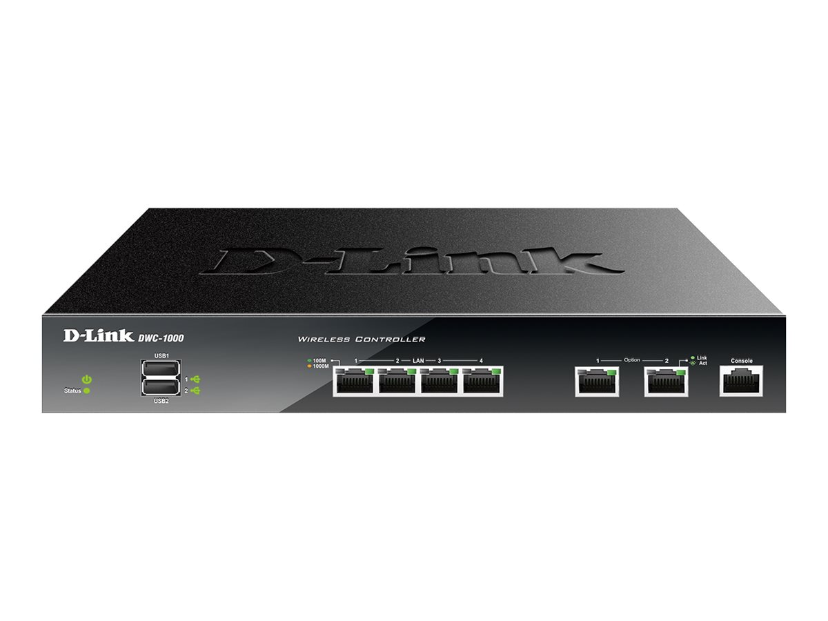TypeRobust and Optimized NetworkThe DWC-1000 features a self-organizing, self-optimizing, and self-healing network capability to increase the stability of the entire wireless network. With regular-based radio scanning and performance analyzing, the DWC-1000 automatically adjusts radio channels and power periodically to avoid interference and keep the wireless network in an optimized state.Comprehensive SecurityThe DWC-1000 provides a comprehensive wireless security solution for any network. On the wireless side, empowered by a Wireless Instruction Detection System (WIDS), the DWC-1000 detects rogue access points and rogue clients as well as anticipates wireless threats, preventing any potential damage and illegal access. In addition to other fundamental wireless security features including WEP, WPA Personal/Enterprise, WPA2 Personal/Enterprise, and MAC Authentication to determine the identity of wireless devices, the Captive Portal feature allows you to block clients from accessing the network until the clients verify their identities. This double-layer authentication and authorization provides a tough security fence to also protect against attacks from within the network.High Scalability, Availability, and FlexibilityTo accommodate for size and organizational structure changes, administrators can purchase a Business Wireless Plus license to upgrade the DWC-1000’s capabilities. D-Link offers two types of Business Wireless Plus licenses: an AP license upgrade and a VPN license upgrade. The AP license upgrade increases the number of manageable access points. The DWC-1000 Wireless Controller manages up to six access points by default and 24 access points per controller after the AP license upgrade. The VPN license upgrade enables the DWC-1000 to provide VPN, Router, and Firewall functionality. The firewall function allows administrators to control network access by setting classification policies. The dual Option ports provide link failover and provide Internet connection redundancy to ensure Internet access. The virtual private network (VPN) features provide secure remote control to manage access points in branch offices. Site-to-site VPN tunnels use IP Security (IPSec) Protocol, Point-to-Point Tunneling Protocol (PPTP), or Layer 2 Tunneling Protocol (L2TP) to facilitate branch office connectivity through encrypted virtual links. In addition, the Secure Sockets Layer (SSL) VPN tunnels empower your mobile users by providing remote access to a central corporate database.Simplified ManagementCentralized remote control of managed access points provides a simple way to automatically discover compatible D-Link Wireless Access Points. Manage and configure these Access Points with one-time configuration dispatch settings. With the controller clustering feature, the administrator can easily log into one wireless controller and perform essential configurations on others within the group. The real-time monitoring of access points and associated client stations enable the efficient utilization of network resources. System alarms and statistics reports on managed access points also help the administrator to use the DWC-1000 to manage, control, and optimize network performance.