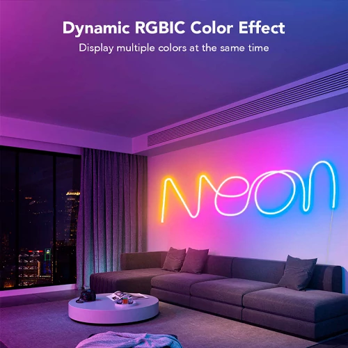 RGBIC neona lentes komplekts ir ideāls risinājums unikālas atmosfēras radīšanai jebkurā telpā. Pateicoties RGBIC tehnoloģijai, lente var vienlaikus attēlot vairākas krāsas, radot satriecošus dinamiskus apgaismojuma efektus. Tas nemanāmi tiek sinhronizēts ar mūziku, ļaujot gaismām “dejot” melodijas ritmā, piešķirot jūsu ballītei krāsu uzplaiksnījumu vai vienkārši radot relaksējošu vidi.