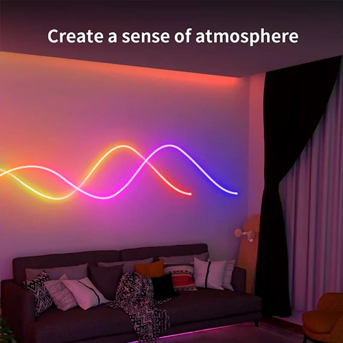 Šis RGBIC neona lentes komplekts ir ideāla izvēle tiem, kuri vēlas savās mājās radīt dzīvīgu, dinamisku un muzikālu atmosfēru.