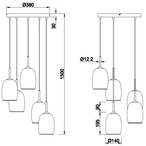 • Gaismas avots Excl. 5xE14 (nav iekļautas)