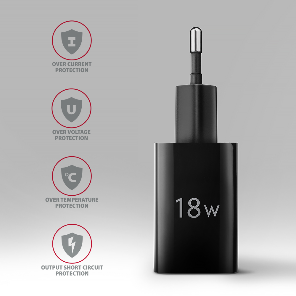 • Producer product familyWallcharger 1x port USB-A, QC3.0/AFC/FCP/Apple, 18W