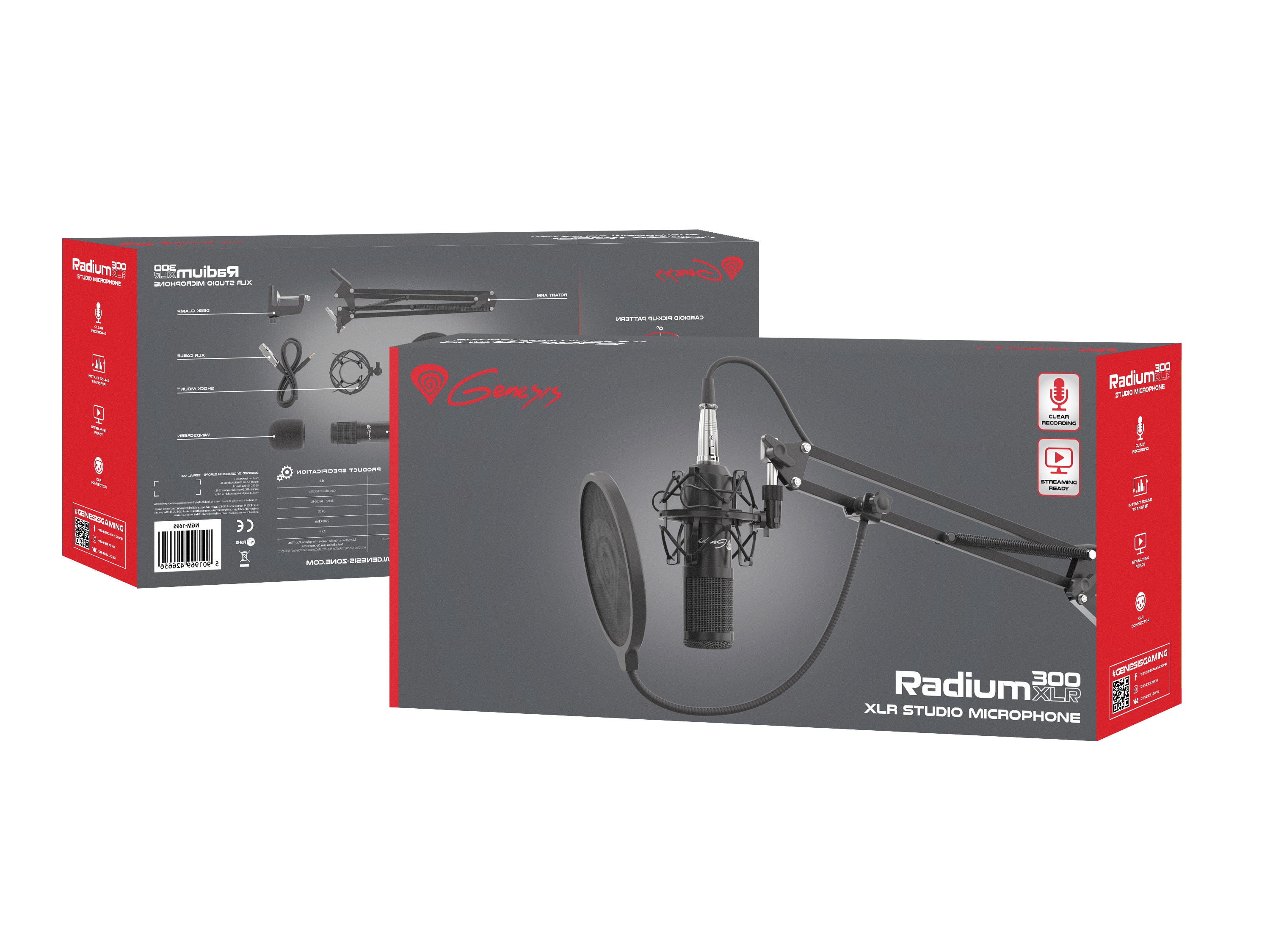 • Package contentGaming Microphone Radium 300; Metal arm; Basket; Pop filter; Sponge cover; XLR cable - 3.5 mm minijack