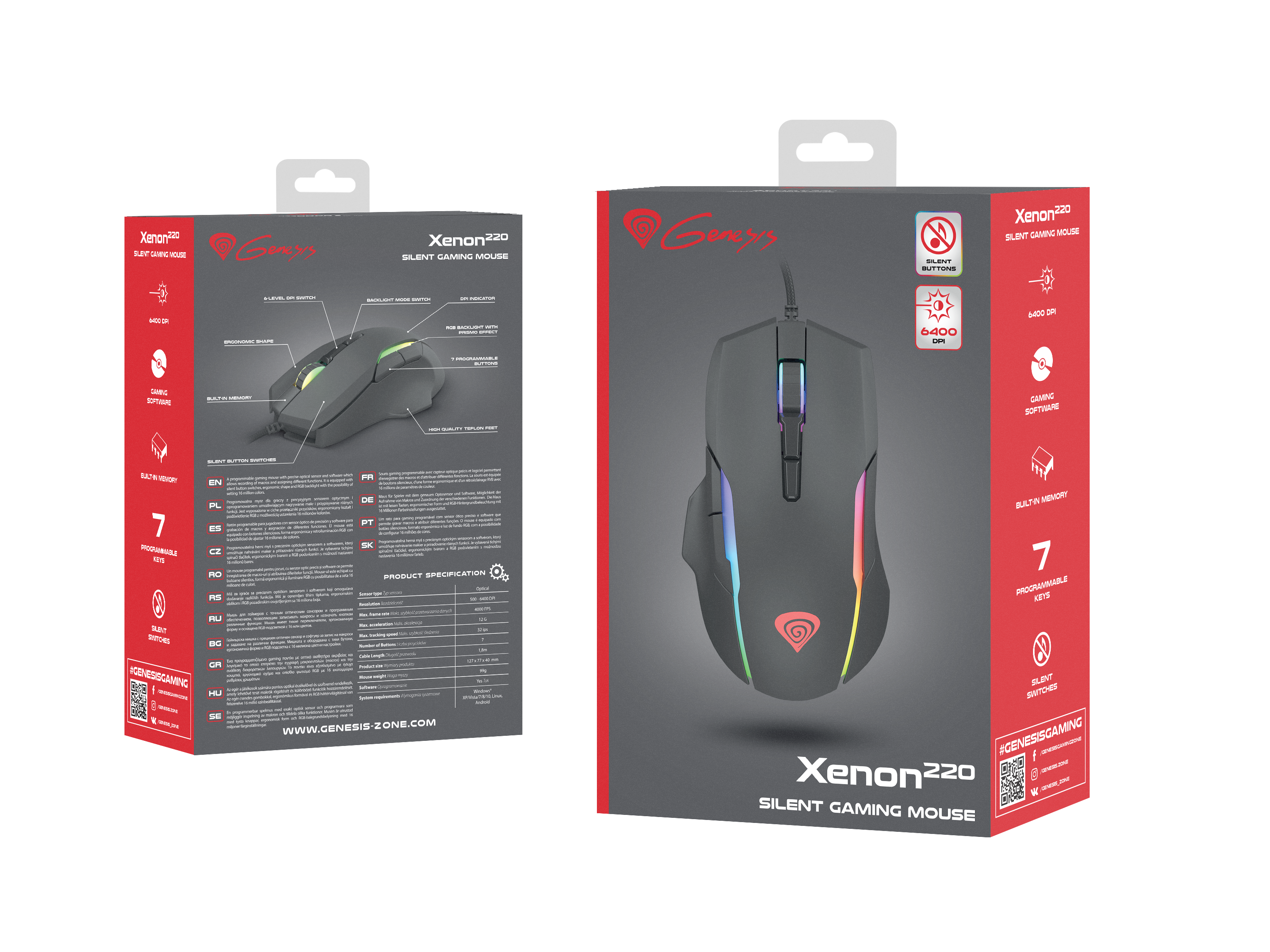 GENESIS Xenon 220 Gaming Mouse, 500 - 6400DPI, Wired, Black | Genesis