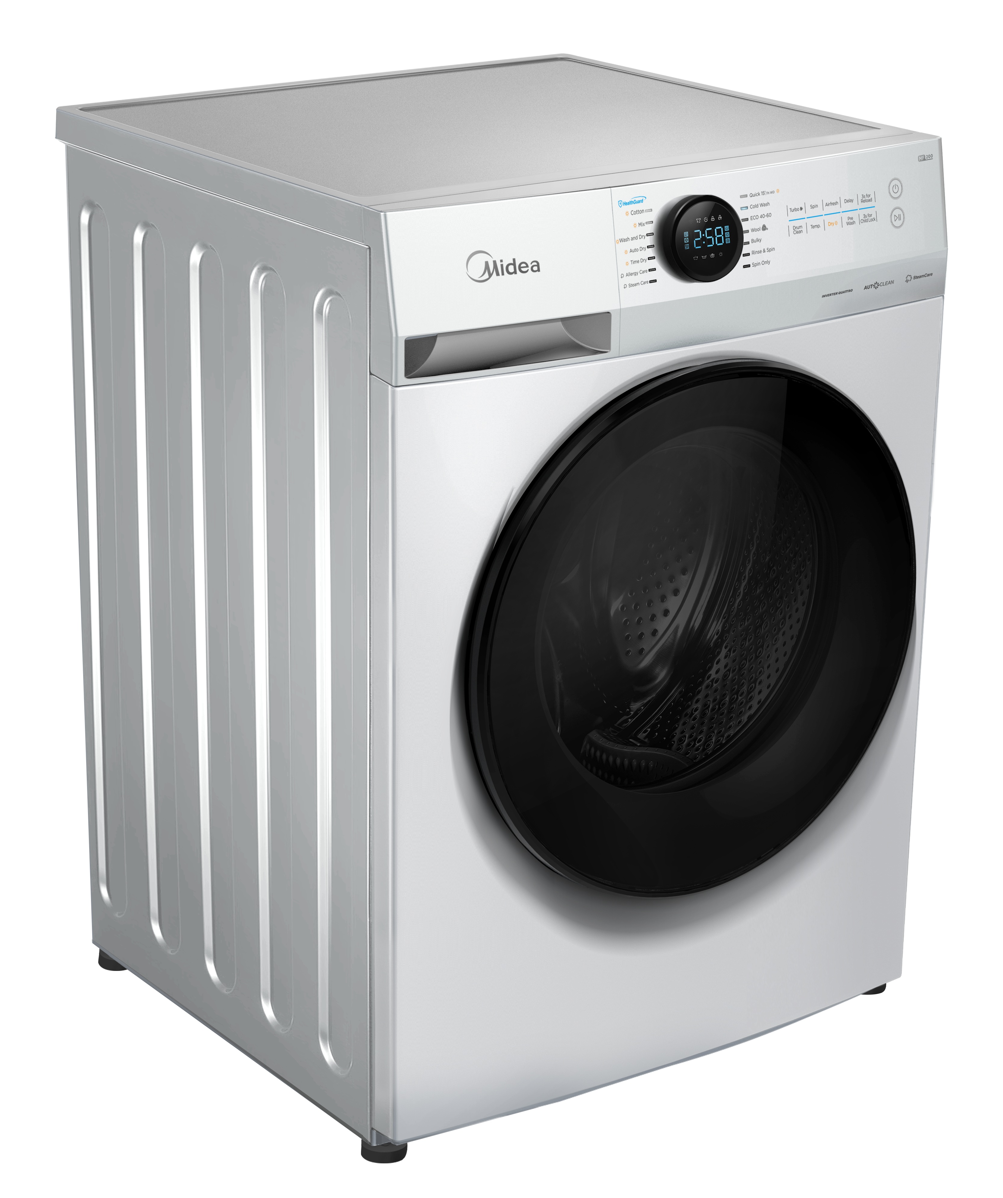 Midea Washing Machine with Dryer | MF200D80WB / W-HR | Energy efficiency class A / E | Front loading | Washing capacity 8 kg | 1400 RPM | Depth 48 cm | Width 60 cm | Digital | Drying system | Drying capacity 6 kg | Steam function |