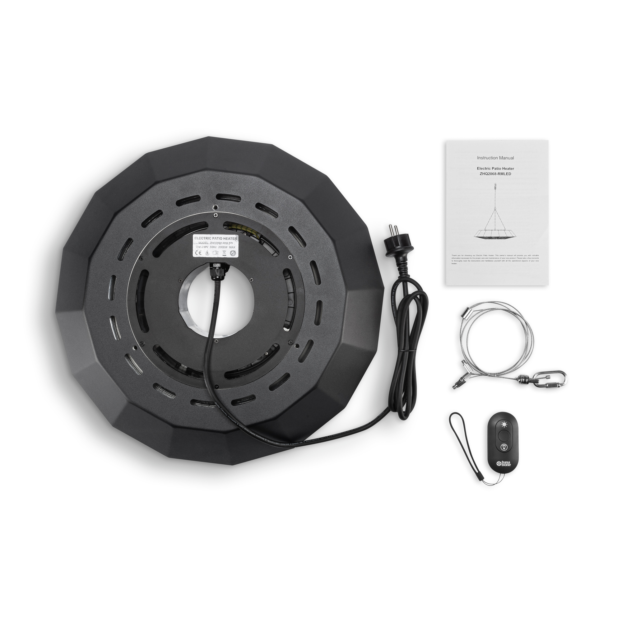 TunaBone | Electric Ceiling Infrared Patio Heater | TB2068C-01 | Patio heater | 2000 W | Number of power levels 1 | Suitable for rooms up to 20 m² | Black | IP45
