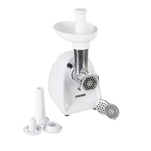 Other featuresA solid device for those who wish to prepare home made sausages and ground meat. It is equipped with three cutting sieves (exchangeable): one to mince meat, the second for poppy seeds, the third one has the middle-sized holes. In the set a plunger and sausage filler are also included. The whole device is made of durable materials that are easy to be disassembled and cleaned. Apart from the forward mode it has a reverse function. Normally the device is rated at maximum 350W with the leverage power of 1500W.