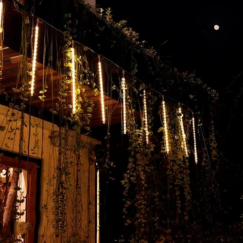Ziemassvētku virtene - zvaigžņu lietus iekštelpām un ārā, 50cm, 8 gab, silti balts, IP44