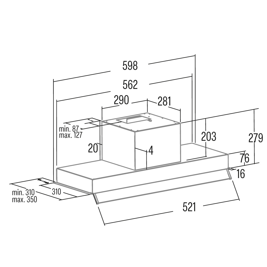 CATA Hood | ARMONIA 60 BK | Canopy | Energy efficiency class C | Width 79.8 cm | 645 m³ / h | Mechanical | LED | Black