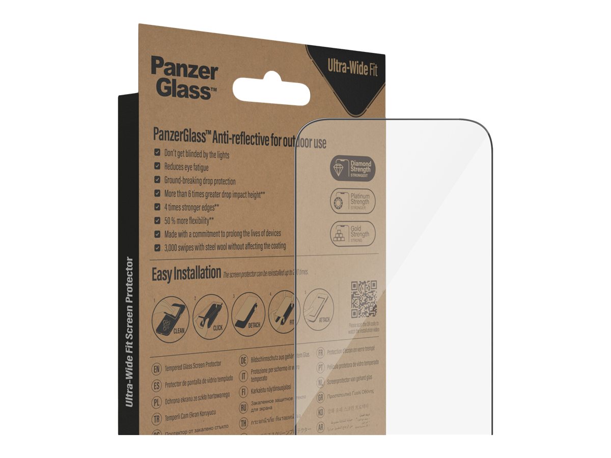 PanzerGlass | Screen protector | Apple | iPhone 14 Pro | Glass | Clear | Ultra-Wide Fit; Easy installation; Privacy Filter; Fingerprint resistant | Anti-Reflective