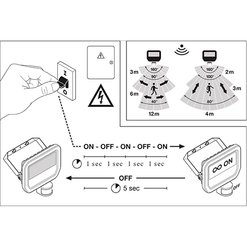 • Дальность обнаружения датчика движения 2…12 m